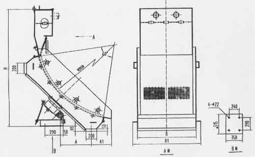 該篩機是由包角45度,60度曲率半徑為2030MM篩箱構成?;⌒魏Y面、篩框采用樞軸轉向結構,能旋轉180度,延長篩面使用壽命。