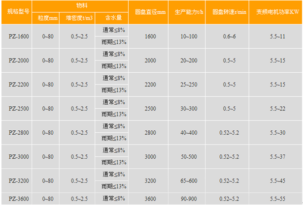 PZ型臥式圓盤給料機(jī)技術(shù)參數(shù):