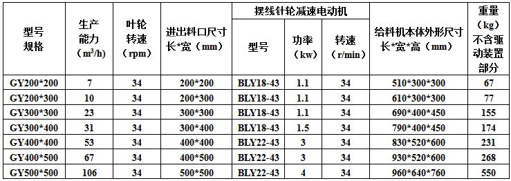 GY型葉輪給料機(jī)技術(shù)參數(shù):