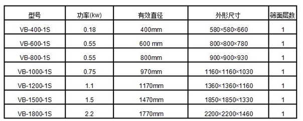 VB三次元加緣式振動篩技術參數: