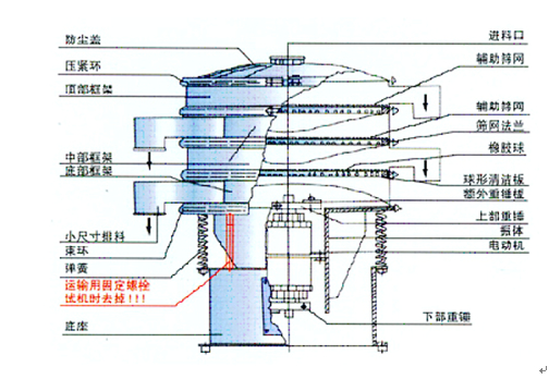 振動(dòng)篩分過(guò)濾機(jī)的基本原理系電機(jī)上下端所安裝的重錘(不平衡重錘),將電機(jī)的運(yùn)動(dòng)轉(zhuǎn)變?yōu)樗健⒋怪眱A斜的三次元運(yùn)動(dòng) , 再把這個(gè)運(yùn)動(dòng)傳遞給網(wǎng)面。改變電機(jī)上下重錘的相位角可以改變?cè)系倪\(yùn)動(dòng)方向。