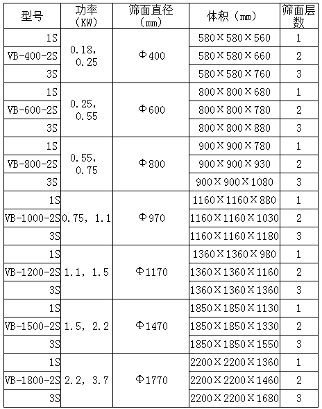 VB系列三次元振動(dòng)篩技術(shù)參數(shù):