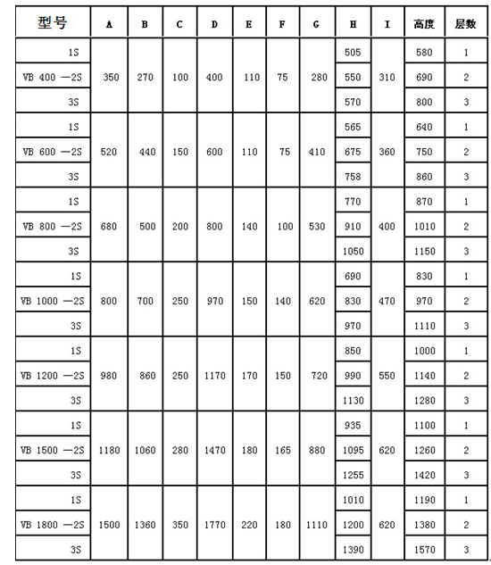 VB系列三次元振動(dòng)篩標(biāo)準(zhǔn)機(jī)器尺寸圖: